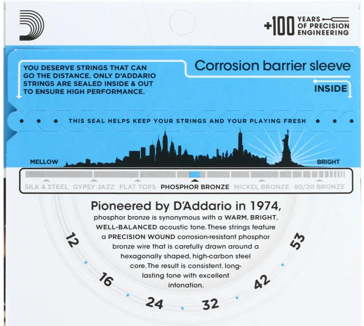 D'Addario EJ16 Phosphor Bronze Acoustic Guitar Strings | LIGHT .012-.053